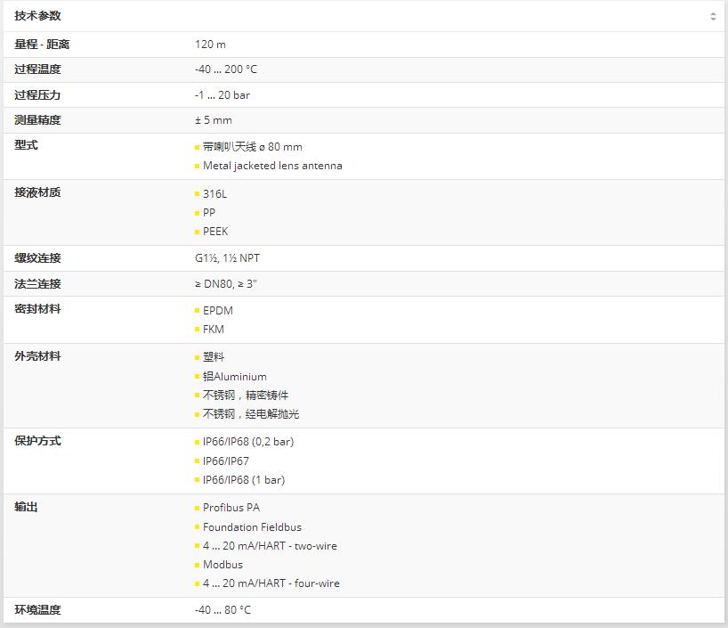 VEGAPULS 69是一種用于在不同工藝條件下連續(xù)測(cè)量散裝固體的傳感器。它是非常高的筒倉(cāng)、大型燃料庫(kù)和分段容器中水平測(cè)量的理想選擇。由于非常好的信號(hào)聚焦,簡(jiǎn)單的設(shè)置和可靠的測(cè)量得到了保證。VEGAPULS 69可以配備封裝塑料天線或集成在金屬法蘭中的透鏡天線。這使得能夠佳地適應(yīng)不同的應(yīng)用領(lǐng)域。困難的過程條件,如:的溫度、過壓或真空,對(duì)于物位計(jì)VEGAPULS 692來說完全不是問題:準(zhǔn)確可靠地測(cè)量?jī)?chǔ)罐和過程容器內(nèi)的物位。借助雷達(dá)技術(shù)物位計(jì)非接觸測(cè)量液體物位并連續(xù)提供高精度測(cè)量值。