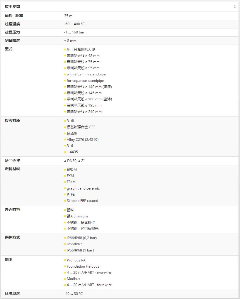 VEGAPULS 66雷達傳感器用于惡劣過程條件下液體的持續性物位測量。 適于在儲藏和過程容器以及豎管使用。 VEGAPULS 66雷達傳感器有不同天線種類,應用廣泛。